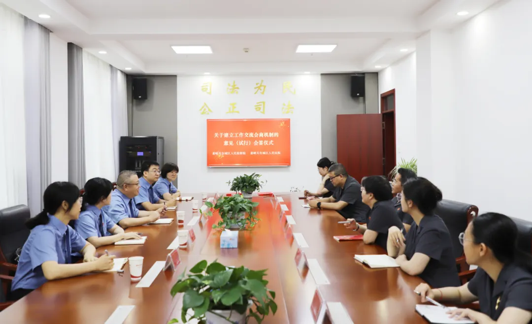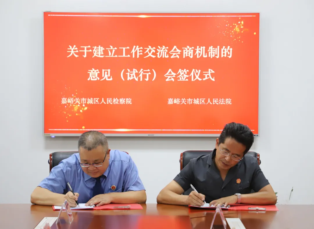 为进一步加强检察院与法院工作交流和协作配合,凝聚法治合力,共同提升“两院”工作质效,提升司法公信力,2025年7月16日,嘉峪关市城区人民检察院与嘉峪关市城区人民法院召开联席会议,共同签署了《关于建立工作交流会商机制的意见(试行)》(以下简称《意见》)。“两院”院领导、相关部门负责人参加会议。