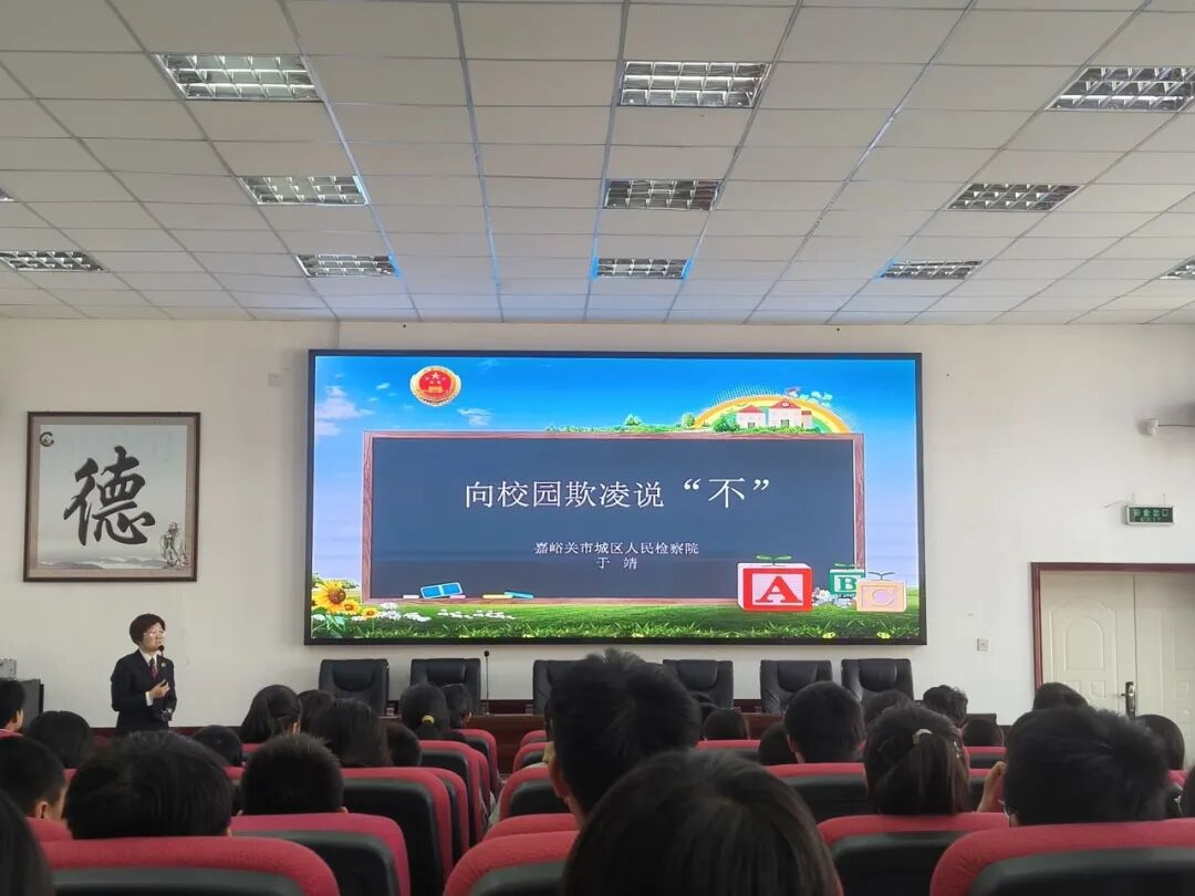 近日,与“校园欺凌”、“刑事责任年龄”相关的话题引起多方热议,为切实加强校园安全教育,提高广大中小学生的法治意识和自我防护意识,嘉峪关市城区人民检察院以“全国中小学生安全教育周”主题活动为契机,联合团市委组成“宣讲+疏导”小团队,进入市第五中学开展以“向校园欺凌说‘不’”为主题的法治宣讲活动。
